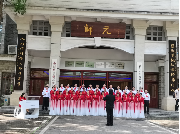 在喜迎中国共产党百岁华诞之际,为凝聚党史力量、坚定党恩信念,教师教育学院党委师生共同录制合唱曲目《唱支山歌给党听》,以传唱红歌的形式重温峥嵘岁月,唤起红色记忆,讴歌党的伟业,弘扬爱国精神。5月8日上午,学院师生在师元楼前开始了唱红歌的录制活动,整个录制过程时间持续一个上午,群体成员身着正装,用饱满的热情、高昂的精神、嘹亮的歌声唱响对党的深深情怀。