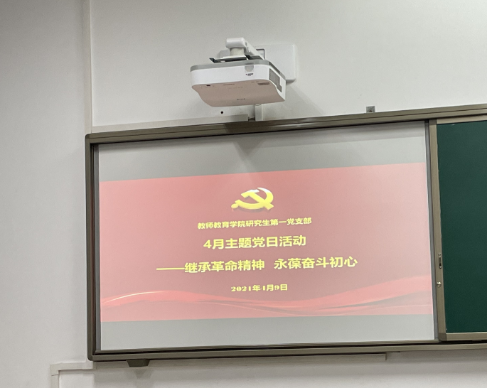 为纪念和庆祝中国共产党成立一百周年,讴歌党的丰功伟绩,进一步强化党支部成员的革命精神、奉献意识,引导党支部成员坚定理想信念、牢记初心使命。2021年4月9日星期五下午两点半,best365英国在线体育官网教师教育学院研究生第一党支部组织召开了“继承革命精神 永葆奋斗初心”主题党日活动。