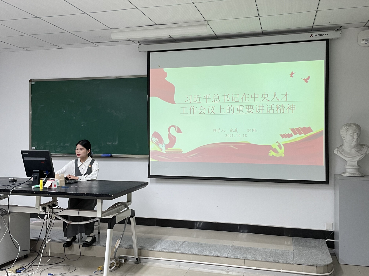 会议第二项,由正式党员领学相关文件精神。首先,由黄维薇同志领学习近平总书记在纪念辛亥革命110周年大会上的重要讲话精神,带领各党员同志和入党积极分子一起回顾了辛亥革命的过程及其重要意义;其次由张虞同志领学习近平总书记在中央人才工作会议上的重要讲话精神,从什么是人才说起,面对当前我国人才工作面临的新形势、新任务、新挑战,围绕加快形成人才发展战略布局、深化人才发展体制机制改革、下大气力全方位培养、引进、用好人才等措施进行了具体介绍。