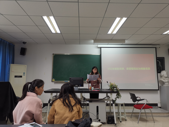 本次会议的第二项工作是就赵夜婷和袁莹莹2位同志的发展工作进行了交流和讨论。两位同志都对自己的学习、工作及生活情况进行了简要的汇报,并表达了入党的强烈意愿。通过入党介绍人的推荐,以及与会党员同志的讨论,一致同意赵夜婷和袁莹莹两位同志加入中国共产党,两位同志并就其余党员同志提出的意见和建议表达了自己将加以改正的决心。