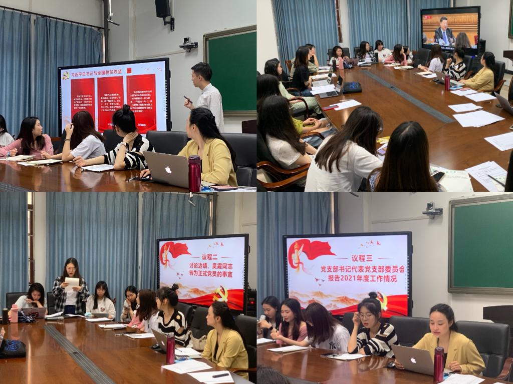 3月18日上午10时,教师教育学院研究生第三党支部在105会议室,召开2021年度组织生活会暨2022年3月主题党日。会议围绕“深入学习贯彻习近平新时代中国特色社会主义思想,学习贯彻党的十九届六中全会精神”主题,开展了专题学习和民主评议等工作。会议应到23人,实到23人,其中刘樱茹同志同步线上参会。会议由支部书记颜婷婷主持,纪检委员杨鸿霄作会议详情记录。
