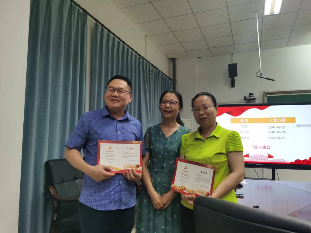 本月有李太华、刘桂侠、胡蓉三位同志过政治生日,支部为三位同志准备了政治生日贺卡。李太华同志带领大家重温入党誓词。