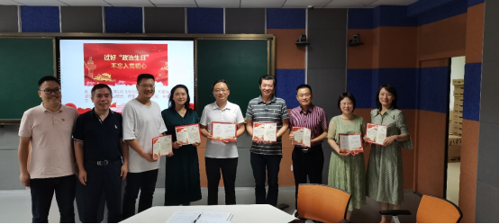 第四项议程,支部为今年5月~9月份入党的郑家福、龚坚等8位同志集体过政治生日,郭亮书记为过生日的同志颁发政治生日贺卡,支部购买了主题生日蛋糕,政治生日形式活泼,气氛热烈。