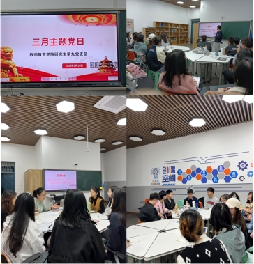 2023年3月10日中午12:30,教师教育学院研究生第九党支部在师元楼106创课教室开展了“学雷锋,办实事,做先锋”三月主题党日学习活动。此次活动由支部书记钟晓燕同志主持,共两项议程。