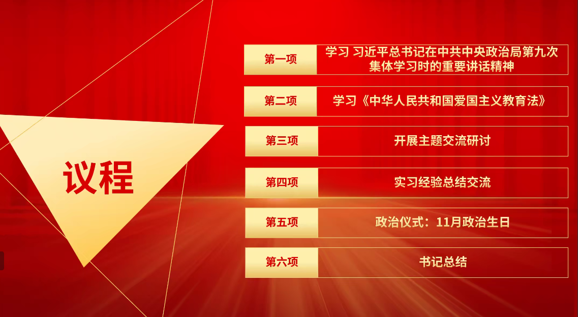 最后支部书记闫现洋对本次活动做了总结。他讲道:实习是教师走上工作岗位的必由之路,实习期间取得的经验教训是我们教师生涯的宝贵资源,我们要学有所获,学有所感,教有所悟,相互的实习经验分享将进一步丰富我们的教师生涯执教案例,为我们走上教师岗位储备必要的资源。我们的组织生活会不仅要学习党的最新指示精神和党建理论知识,也应该要加强专业知识学习,推动党建与学业融合,与教师事业融合,锤炼党性的同时,丰富专业知识,为党育人,为国育才,争做新时代的四有好老师。