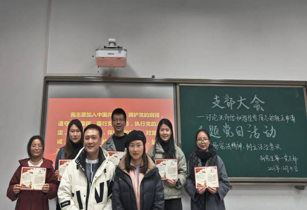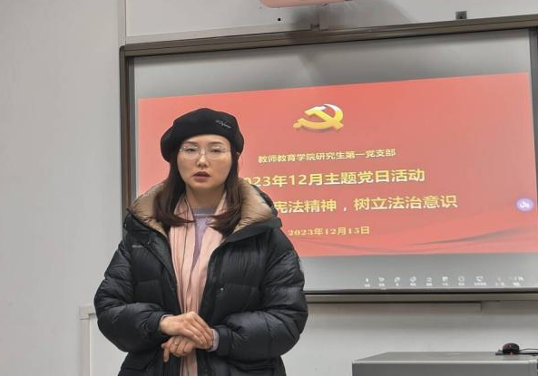杨琳同志组织支部开展12月主题党日活动。孙悦悦同志以“宪法凝聚共识,汇聚团结奋斗力量”为主题开展微党课,带领支部学习《习近平总书记在第十个国家宪法日之际作出的重要指示精神》。学习之后杨琳同志发表感言,表示我们要牢牢把握中国式现代化的本质要求,以宪法凝聚共识,真正成为宪法忠实崇尚者、自觉遵守者、坚定捍卫者。随后,全体同志观看《尊崇宪法精神,厚植法治文化》专题视频,观看后结合自身实际、围绕活动主题开展讨论,各年级代表唐玖江、苏佳、马宇阳和展恩玉四位同志发表了自己的看法。其中,博士生代表唐玖江同志表示宪法与每一个人息息相关,各位同志应自觉履行宪法义务、捍卫宪法权利,在组织生活中深刻领悟如何知法、学法、守法、用法。
