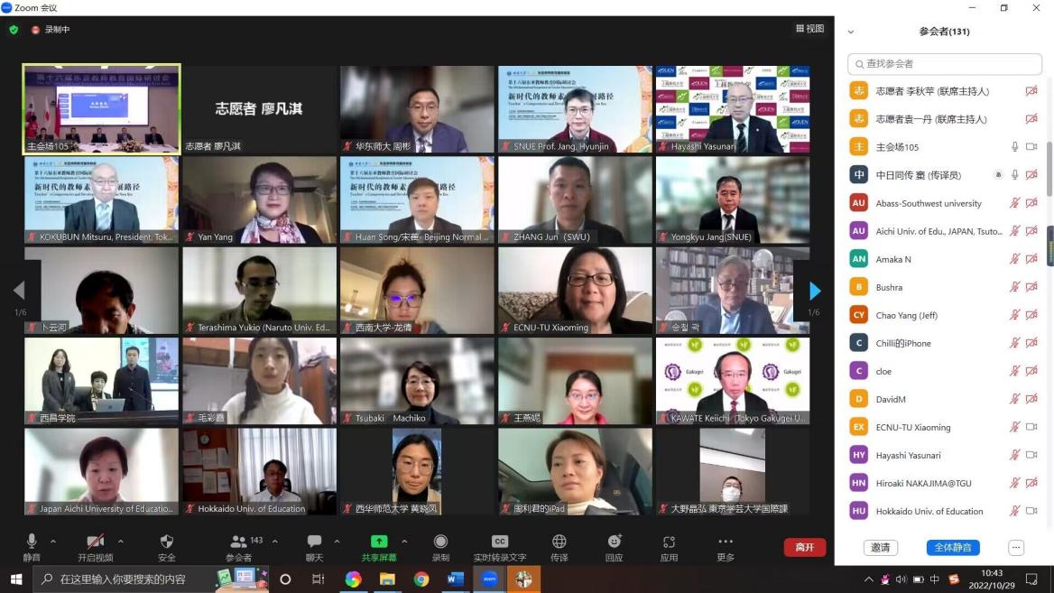 2022年10月29日,为探索东亚国家教师素养的提升与培育路径,第十六届东亚教师教育国际研讨会在best365英国在线体育官网召开。本次研讨会以“新时代的教师素养与发展路径”为主题,围绕新时代教师角色重塑、教师知识与核心素养和智慧教学与教师智慧三大议题开展。此次会议创造性使用互联网技术,以线上与线下相结合的方式多地同步举行,主要有中日韩国22所高校的140位专家学者参会,语言通道含中文、日语、韩语及英语,并通过网络向诸位参会者开放。