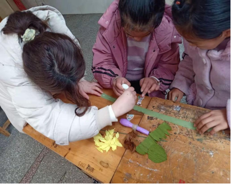 上午,由袁凡舒志愿者担任主讲老师,给诸佛中心小学五年级的同学们上了一堂以向日葵为主题的手工课。