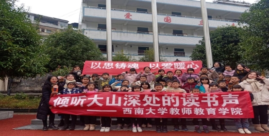在即将离别之际“以思铸魂,以爱暖心——倾听大山深处的读书声”诸佛中心小学志愿服务队与学生们在红旗下留下了宝贵的合影。