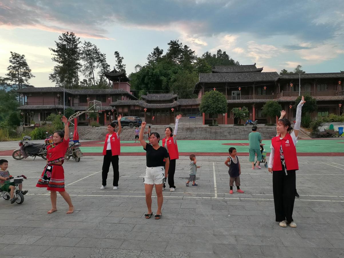 傍晚,在付老师的介绍下,小分队前往文化广场与庙池甩手揖团队一起学跳甩手揖。付老师介绍道,目前庙池村民所跳甩手揖是对诸佛甩手揖中的精华部分进行再创作,融入历史学、民俗学、艺术学、音乐学等多学科领域专业知识,并搬上舞台且推广至广场舞中去,实现了传统民族文化的创造性转化与创新性发展。小分队在学习过程中进一步感悟到甩手揖舞蹈的艺术魅力,并进一步意识到文化传承的迫切性。