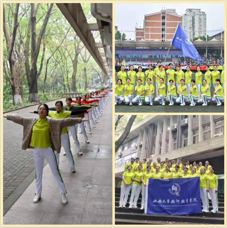 本届运动会,我院共派出40多位教师,分别参加了广播体操、集体跳绳、迎面接力、篮球上篮、足球射门五个集体项目。文科教育中心的龚坚老师以及地理学科教育的胡蓉老师分别参加了铅球、跳远以及1500米长跑。