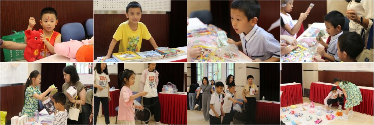除了游戏区外,本次活动还特别设置了跳蚤市场。孩子们纷纷带上自己喜欢的物品,如绘本书籍、饰品挂件、玩具公仔、电动风扇等等,在跳蚤市场进行交易,体验当一日小老板。游戏与真实情境结合,活动现场热闹非凡,给孩子们创造了一份关于成长的独特体验,这也是教职工们送给孩子们的一份儿童节礼物。