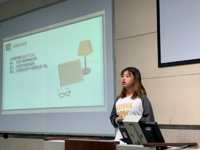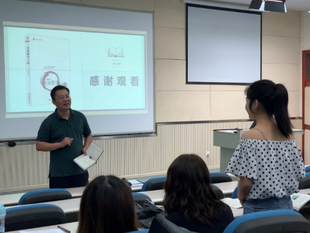 第二环节,由来自学科教学(思政)的董梅、熊远莉、李龙珍三位同学分享教育学著作——《有效教学十讲》。董梅分享的内容是该书关于“教学的有效性”的方面。首先,她由现状逐步谈到教学有效性的重要意义和价值;其次具体阐述了什么是学习的有效性、什么是有效的教、什么是新课程教学的有效性;最后,董梅分享了“怎么从有效教学走向优质教学”。