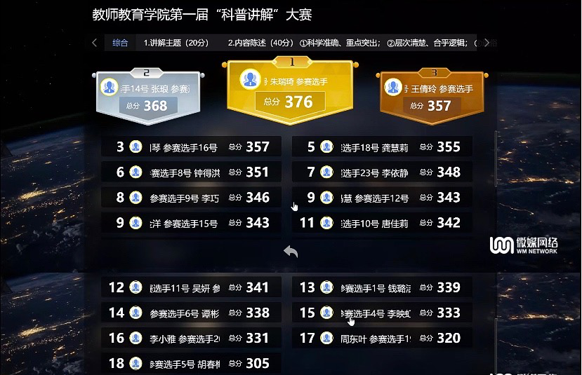 最后,四位评委老师通过评分系统进行评分,共有朱瑞琪、张琅、王倩玲、田琴(并列第三名)四位同学获得一等奖。