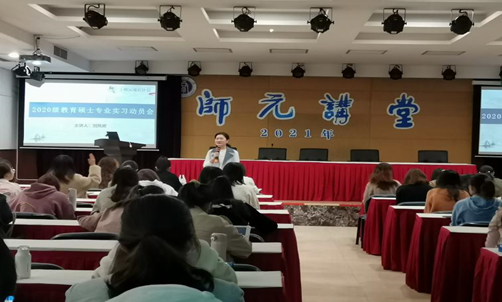 3月19日上午,学院在师元讲堂召开2020级教育硕士专业实习动员会。会议主要有两项议程:介绍实习安排和开展心理团辅。