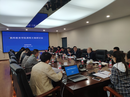 为培养学生学科素养,提升教学评价与实践反思能力,顺应学科教育和公费师范生的教学发展,教师教育学院于2020年11月13日上午10:00在师元楼208会议室召开了公费师范生本科教育类课程和学科教学教育硕士课程改革方案研讨会。会议由副院长于泽元教授主持,陈时见副校长、学院党政领导、各中心主任副主任和各教研室主任参加了本次会议。