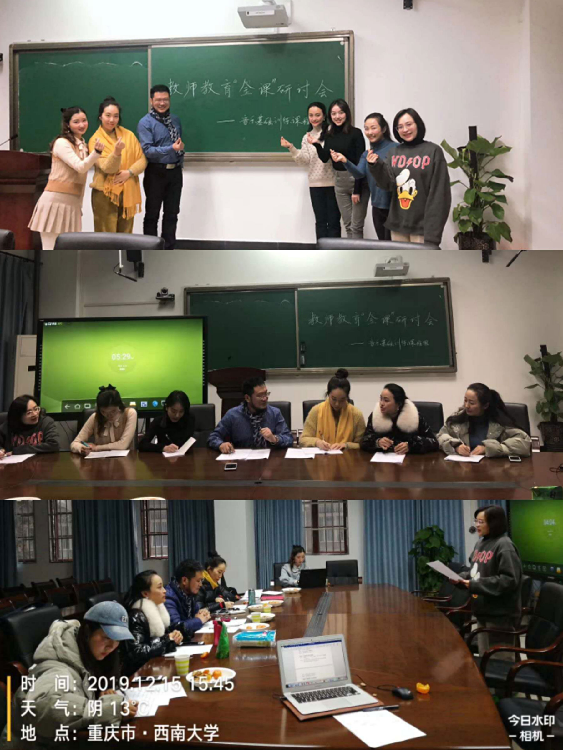 我们音乐基础能力训练课程教师团队成员有郑茂平院长、石欣宇老师、张凌洋老师、颜婷婷老师、王斌老师、李文杰老师、郭为民老师、邓颖老师、张伟萍老师、欧娅莉老师、李妍妍老师、李婉韵老师、陈玉琨老师等。音乐基础能力训练课程组的教师团队是多么的团结,力量是多么的强大,有困难大家一起解决,有事情大家共同商量,很多时候老师们都是尽力做到完美,时常做到深夜凌晨。在学院领导的指导下,教学行政的辅助下,我们音乐基础能力训练课程运行至此,学生上课互动积极,教学效果反响良好。