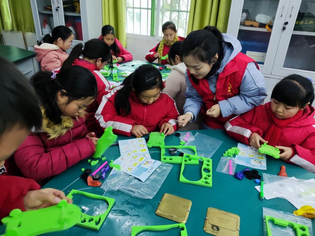 志愿者们带领全校60名学生走进科学艺术世界,在动手、动脑间激发学生对科学探究的兴趣。在科普小实验课堂上,志愿者陈思丽通过“魔法水杯”“谁的口气大”“反冲小车”3个实验,揭示生活中的物理现象,发展学生的科学思维。随后,志愿者李依静在科学思考方法课堂上,以日常生活现象为切入点,引导学生学会观察、假设、实验和评估。