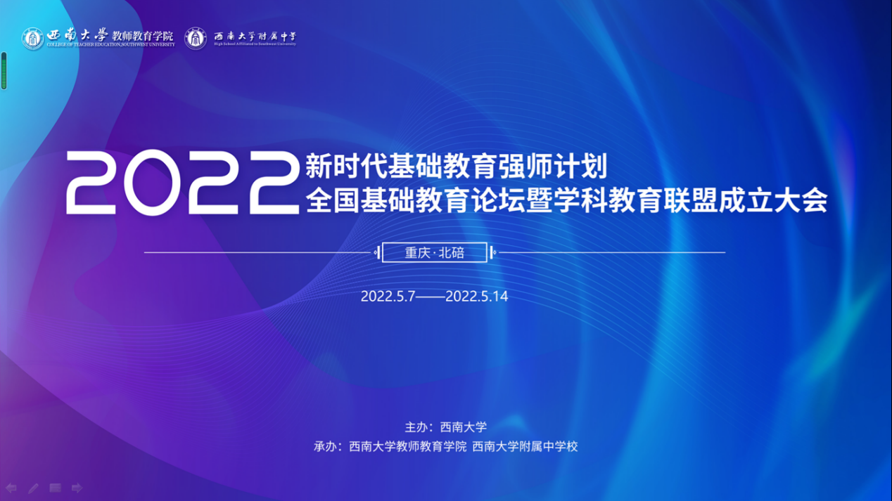 5月7日上午,由best365英国在线体育官网主办,best365英国在线体育官网教师教育学院和best365英国在线体育官网附属中学联合承办的“2022年全国基础教育论坛暨学科教育联盟成立大会”开幕式在best365英国在线体育官网附属中学立人报告厅举行。会议以“新课程·新教材·新高考”背景下的教育教学改革为主题,旨在贯彻落实新时代基础教育强师计划,推进义务教育新课标落地实施。