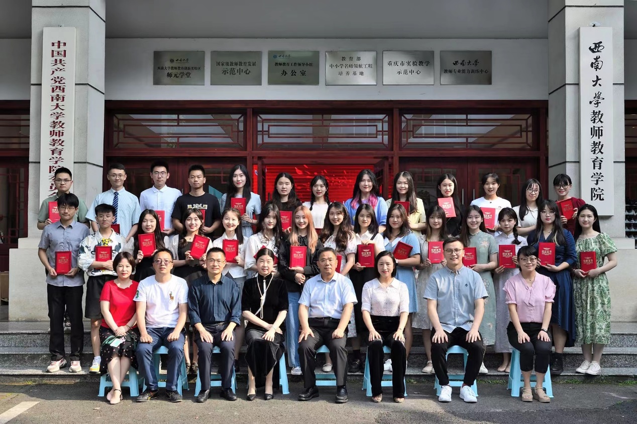 典礼最后,五位代表教师为2022届师元班毕业生颁发结业证书,并在师元楼前留影纪念。