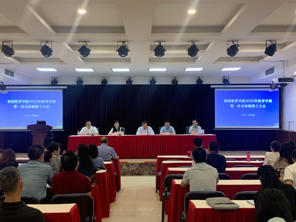 2022年9月2日,学院召开2022年秋季学期第一次教职工大会,best365英国在线体育官网副校长陈时见、学校党办主任余晓蓉代表学校宣布best365英国在线体育官网委员会关于干部任免的决定。教师教育学院全体领导班子、 全体教职工出席会议。