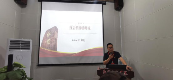 守好“红色根脉”,加强师德教育,是新时代师德师风建设的必然要求和有效途径。为持续推动学习贯彻习近平新时代中国特色社会主义思想主题教育走深走实,教师教育学院着力打造“红岩精神铸师魂”六个一品牌活动,充分运用重庆红色文化资源强师德、铸师魂,推动立德树人事业不断前进。6月11日,学院党委书记郭亮以《红岩精神铸师魂》为题讲授专题党课。学院两委委员、党支部书记、毕业生党员参加党课学习。