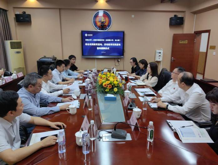 陈恩伦院长和成实外教育集团副总裁严弘佳代表双方进行签约。韩旭东副校长向成都外国语学校(附属小学、幼儿园)授牌best365英国在线体育官网教育实习与研究基地。