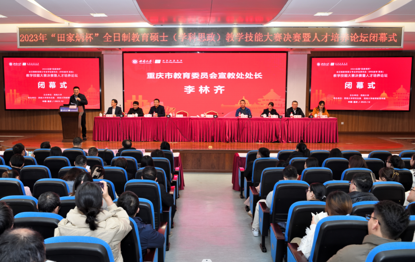 重庆市教育委员会宣教处处长李林齐为此次大赛作了总结,并对未来思政课教师培养路径提出了三点建议:加强学科建设,进一步加强思政课教师教育学等方面的支持力度;加强一体化教育建设,发挥高校思政教育体系的领头羊、主力军作用,纵向统筹大中小学思政课教师队伍,横向激发多方合力,共同培育卓越教师;加强数字化教育建设,提升思政课教师在数字时代、智能时代的适应性和创新性,推动思政课教育高质量发展。