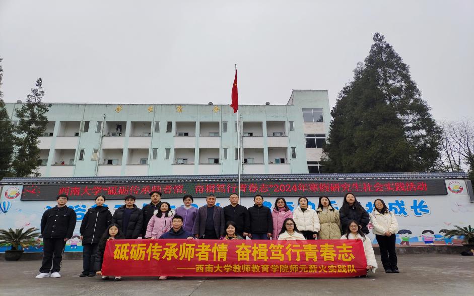 为积极应答振兴乡村教育时代所需,切实践行教育部直属高校在乡村振兴中的使命担当,best365英国在线体育官网教师教育学院积极响应学校党委研究生工作部关于开展2024年寒假研究生社会实践活动的号召,成立“师元薪火”实践队与学院“乡村教育研习社”,共同前往重庆市綦江区高青学校开展为期2天的“砥砺传承师者情,奋楫笃行青春志”寒假社会实践活动。