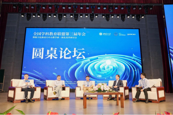 伴随着AI技术的不断发展,数字时代的教育变革与教育高质量发展是社会各界广泛关注的话题。基于此话题,本次圆桌论坛邀请了郭绍青教授、熊璋教授、人教音数公司总经理兼总编辑龙正武、视源股份未来教育集团(希沃)副总裁、广东省杏坛智慧教育创新研究院院长魏振水展开交流。论坛嘉宾对数字时代下教育的变革促进作用达成共识,同时也强调,教育数字化产品的落地需要结合教育教学实际应用需求,让人工智能更好地赋能未来教育。