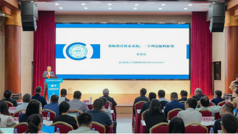 中国高等教育学会教师教育分会副会长、北京师范大学教育学部部长朱旭东教授致辞。他认为,应着力推动教师教育学科的建设与发展,为我国教师教育政策制定以及实践层面提供有力支撑。教师教育兼具政策属性、实践属性和学术属性,因此,他倡议教师教育研究进一步融入学科教师教育范畴。接下来,他带来题为《教师教育体系重构:理论框架和若干要素分析》的主题报告,从培养体系、培训体系、评价体系、配置体系以及保障体系等方面,深入剖析了教师教育体系重构的现状、存在的问题以及关键影响因素。