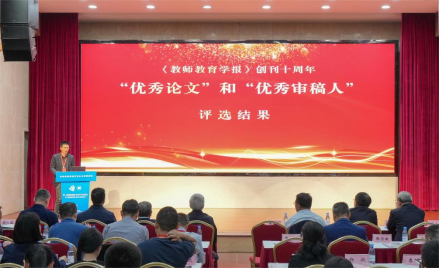 《教师教育学报》创刊十周年成果报告中,best365英国在线体育官网期刊社社长张陈主持。与会人员共同观看《教师教育学院报》创刊十周年展示片,随后公布《教师教育学院报》优秀论文和优秀审稿人名单。成果展示后,中国教育学会教育理论刊物分会会长高宝立教授作点评,他认可《教师教育学报》的学术赋能、守正创新等特色,并强调教育期刊的多方面价值:理论创新的原理、教育政策咨询的智库、理论向实践转化的桥梁、理论导向的窗口和教育学科人才梯队建设的重要助力。他进一步指出,教育期刊应从六方面加强工作:以政治站位明确方向;以时代需求找准定位;以质量标准促进评价;以学术治理促进规范,;以中国立场开拓国际视野;以队伍建设强化内涵。
