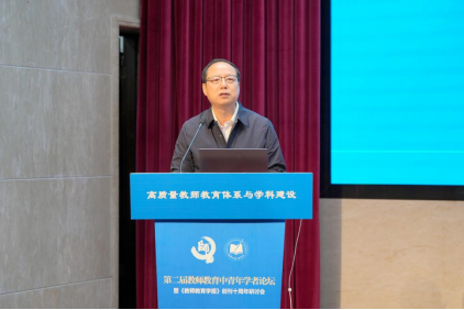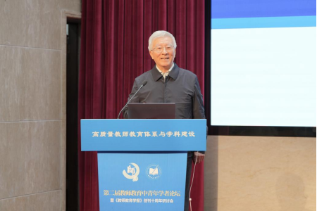 中国高等教育学会副会长管培俊教授致辞并作主题报告。他谈到新时代高质量教师教育体系的十二条显著特征:“为党育人、为国育才”的教师人才培养体系;“教育家精神”引领的“高水平人才培养体系”;一体化的教师人才培养体系;素质取向、全面发展的教师人才培养体系;矩阵结构的教师人才培养体系;创新指向的教师人才培养体系;“协同育人”的教师人才培育体系;“人才引领驱动”的人才培育体系;“AI赋能”的教师终身发展体系;“开放灵活”的教师人才培育体系;促进“教育公平”的教师人才培育体系;良法善治的教师人才培育体系。
