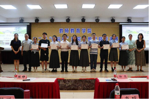 接下来,教师教育学院党委书记郭亮、学院副书记陈铮以及大赛评委为选手颁发荣誉证书,共享喜悦,合影留念。