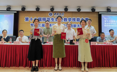 比赛现场组评出特等奖3名,一等奖7名,二等奖11名,三等奖13名。视频组评出一等奖17名,二等奖32名,三等奖49名,文学院、历史文化学院 民族学院、美术学院、地理科学学院、数学与统计学院获得优秀组织奖。选手李昂用英语向学生介绍了“龙脊梯田”的主题、历史、因地制宜的特点,总结出龙脊梯田“继承中国智慧”与自然和谐共处的特点。李恋的《环境与发展》,以“从‘制云’走向‘治污’”为主题,下设三个相辅相成的子议题,深入探讨环境污染与治理的问题,讲述中的动图与数据富有感染力与冲击力。选手许峻榕的《大气热力环流》,以重庆缙云山火为导入,用切近生活的真实情境激疑增趣,助力学生理解大气环流的生成原理。陶艳琳在“大国之路——唐朝的中外文化交流”中,以玄奘西行为典型案例,从交流互鉴之路、兼收并蓄之路、继往开来之路三个方面,讲出了唐朝文化的向心力、传播力、学习力,最后落脚到文明交流互鉴上的价值与意义上。孙乐的《装饰色彩》,涵盖了装饰色彩的定义、特点与运用,结构完整、含蕴丰富。刘慈的《母鸡咯咯叫》,用激情昂扬的情感、亲切自然的言行,引导学生们以悦感音、以情入乐。魏心贝的《艺术标题显个性》,充分利用现代化信息技术,让学生在实践中领悟艺术字表达的独特魅力。