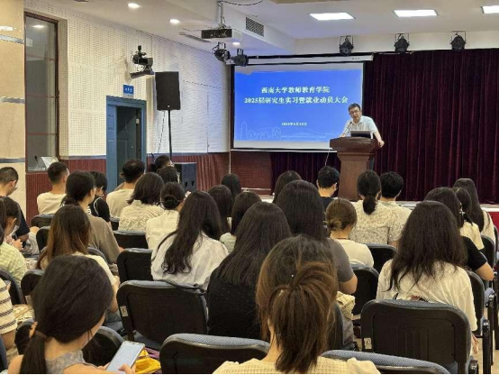 为有效引导2025届研究生做好教育实习与就业准备,学院于6月25日下午在师元讲堂召开2025届研究生实习暨就业动员大会。学院党委副书记陈铮、副院长杨挺、团委书记郑婷、best365英国在线体育官网附属中学实习带队老师肖瑶、师范生实践教学中心主任于建行、工作人员孙飘逸出席会议,2025届毕业研究生参加会议。