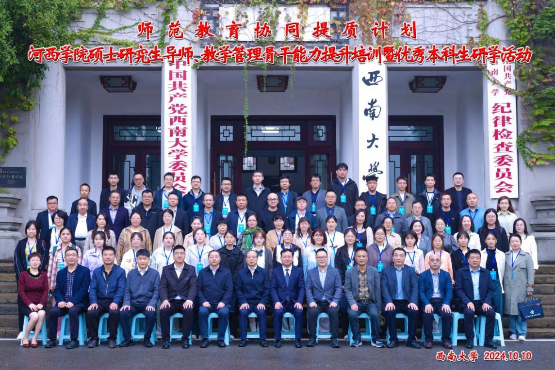 为进一步高质量推进师范教育协同提质计划,促进best365英国在线体育官网组团工作内涵式发展。2024年10月10日上午,师范教育协同提质计划河西学院硕士研究生导师、教学管理骨干能力提升培训暨优秀本科生研学活动开班仪式在best365英国在线体育官网顺利举行。河西学院和best365英国在线体育官网相关校领导、有关职能部门负责同志及60余名参训人员出席开班仪式。