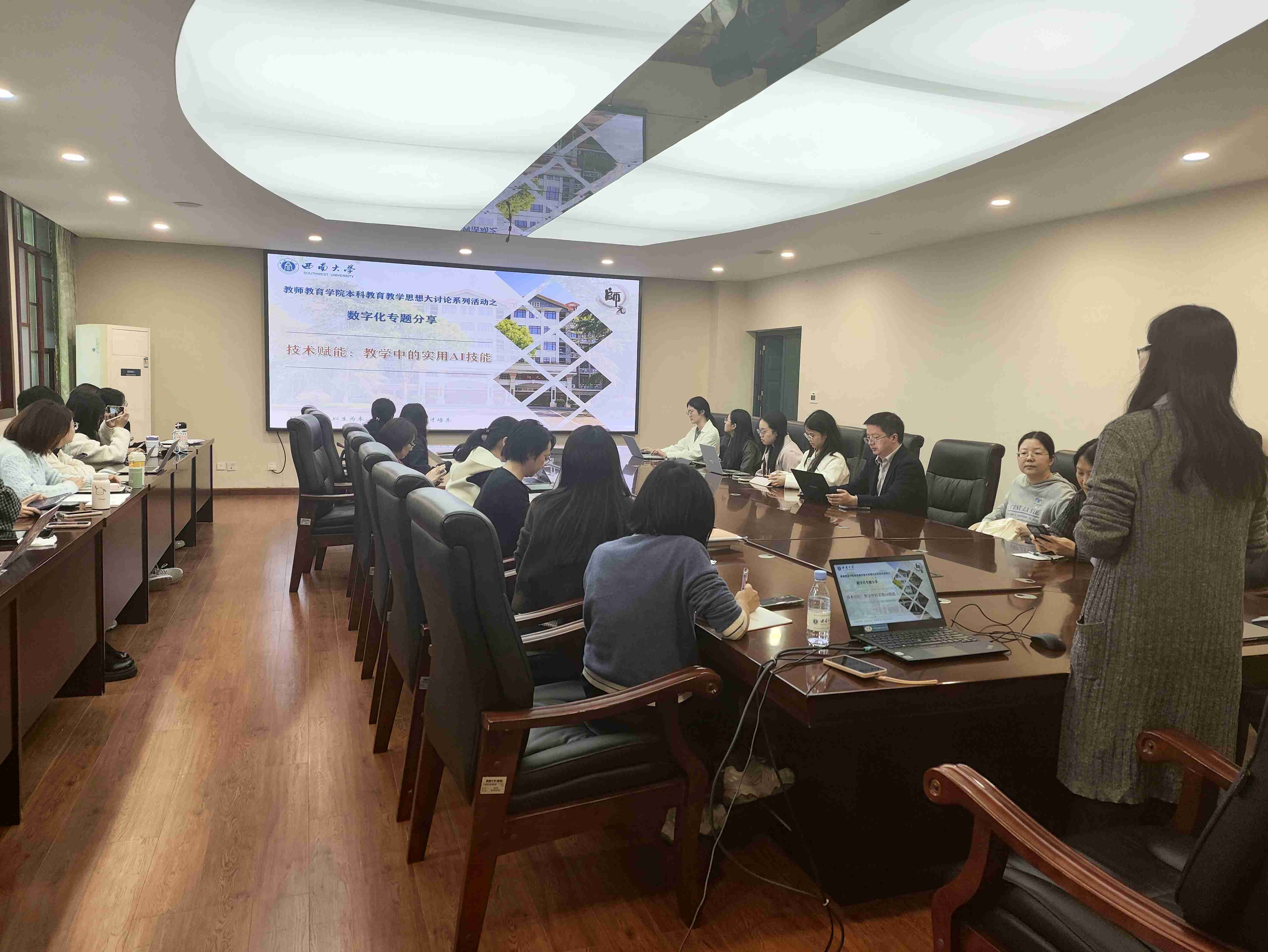 根据《best365英国在线体育官网“以本为本、以生为本,全面推进卓越人才培养”本科教育教学思想大讨论工作方案》(西校〔2024〕173号)及《best365英国在线体育官网教师教育学院“以本为本、以生为本,全面推进卓越人才培养”本科教育教学思想大讨论工作方案》,2024年11月14日下午,教师教育学院本科教育教学思想大讨论系列活动之数字化专题分享活动,在6教208会议室顺利举行。本次活动由我院数字化骨干教师钟晓燕主讲,题为“技术赋能:教学中的实用AI工具”。分享旨在通过介绍各种AI工具在教学中的应用,提升教师的数字化教学能力与数字素养,助力教育教学的创新与发展。