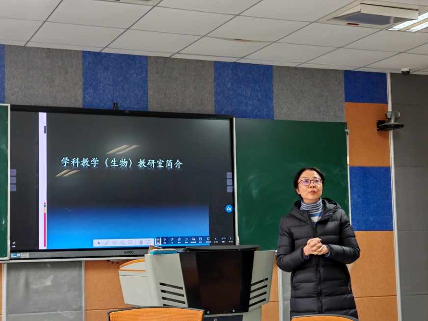 活动开始,霍静教授详细介绍了教师教育学院学科教学(生物)教研室的发展历史,以及在发展过程中为教研室和学科建设做出过重要贡献的历任教师。结合教研室的历史发展特点,霍老师提出学科建设的首要重任是人才培养,并在基础上围绕教研室的人才培养、教学资源建设、科研能力发展、学科定位与目标等方面进行了深度的思考和架构,鼓励老师们做出新的突破。