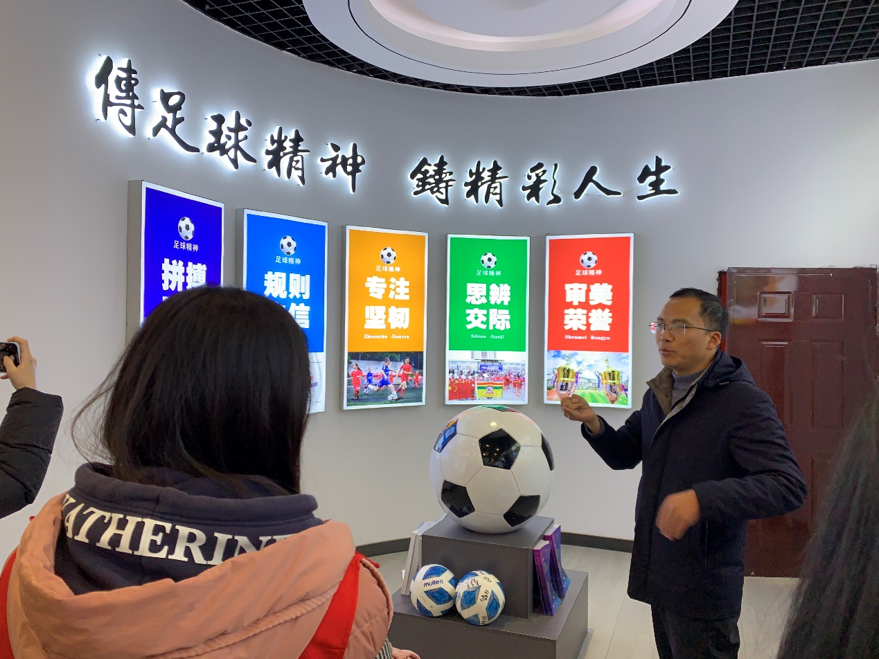 在马书记的带领下,实践队员们依次参观了“传足球精神,铸精彩人生”党建品牌文化墙、优秀学员展览画报以及足球展览馆。当马书记讲解到一件带有球星签名的球服时,他谈到:“千里之行,始于足下。我们通过将足球训练常态化,帮助留守儿童走出了大山,走向更广阔的天地。”截至目前,已经有三个孩子通过足球实现了出国访问的梦想,改变了自己的人生轨迹。