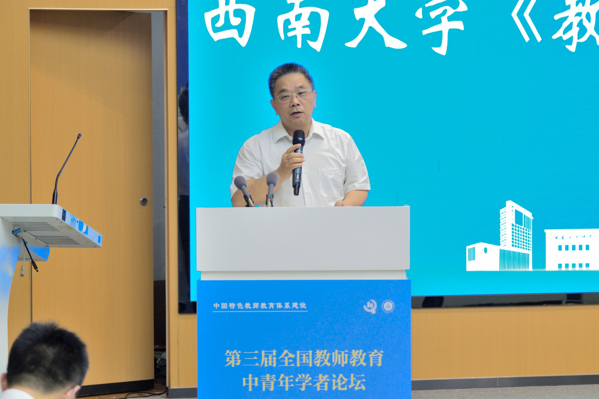 北京师范大学朱旭东教授作为特邀嘉讲话,他呼吁学者们立足本土实践,以科研推动教师教育知识生产发展,为中国自主知识体系贡献力量。致辞环节简短而有力,为本场论坛奠定了务实创新的基调。