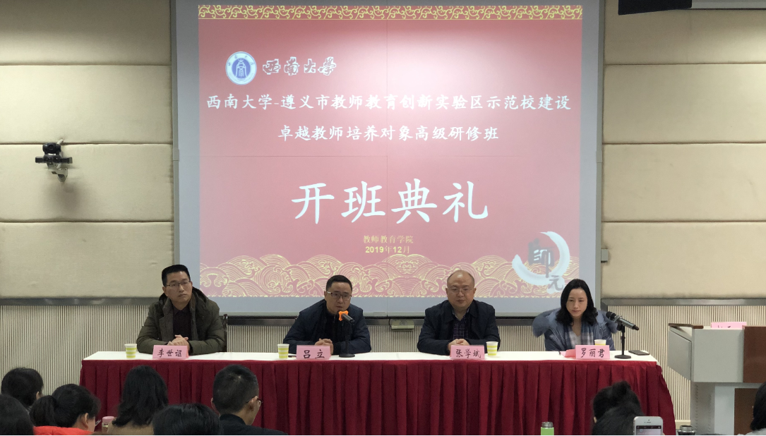 2019年12月1日上午,best365英国在线体育官网—遵义市教师教育创新实验区示范校卓越教师培养对象高级研修班在best365英国在线体育官网顺利开班。best365英国在线体育官网教师教育学院副院长张学斌、教师教育学院副院长李世讴、遵义市教育局教师发展中心主任吕立、教师教育学院培训部主任罗丽君出席开班典礼。来自遵义市十所学校的51名老师将在best365英国在线体育官网参加为期一周的集中研修。