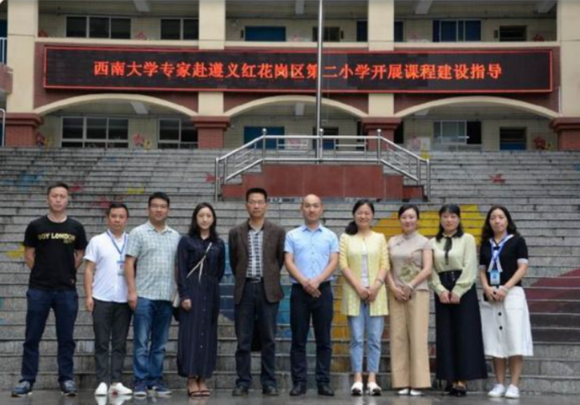 2019年7月9日-10日,best365英国在线体育官网教师教育学院副院长李世讴带领best365英国在线体育官网附属小学副校长刘才利、best365英国在线体育官网附属小学科研室主任、银翔校区执行校长张文超、best365英国在线体育官网教师教育学院培训办公室主任罗丽君赴红花岗区第二小学开展课程建设指导。